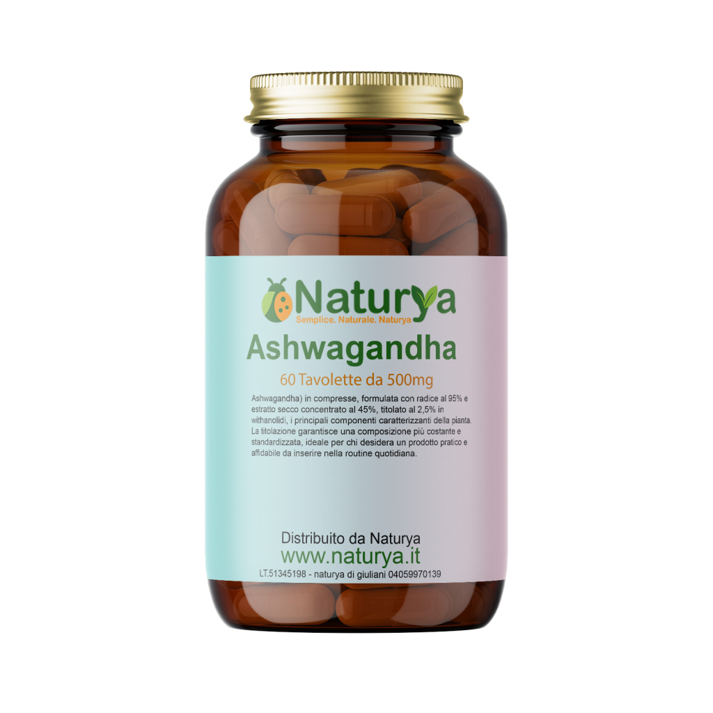 Integratore a base di Withania somnifera, conosciuta anche come Ashwagandha, proposto in pratiche compresse per un utilizzo quotidiano semplice e preciso. La formulazione utilizza radice di Withania ad alta concentrazione, comprendente una quota di estratto secco standardizzato titolato in withanolidi, i composti attivi più rappresentativi della pianta. La presenza di un estratto titolato consente di mantenere nel tempo una composizione più controllata e uniforme.